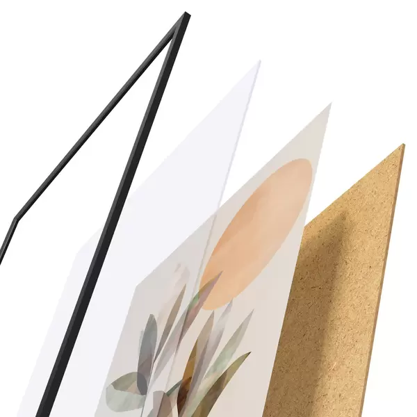 Plakát se skládá z rámu, plexiskla, tištěného obrazu a dřevotřískového podkladu. Díky úchytům na zadní straně lze plakát ihned zavěsit na zeď.