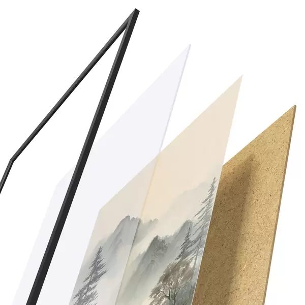 Plakát se skládá z rámu, plexiskla, tištěného obrazu a dřevotřískového podkladu. Díky úchytům na zadní straně lze plakát ihned zavěsit na zeď.