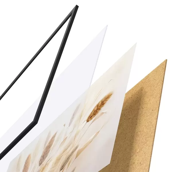 Plakát se skládá z rámu, plexiskla, tištěného obrazu a dřevotřískového podkladu. Díky úchytům na zadní straně lze plakát ihned zavěsit na zeď.