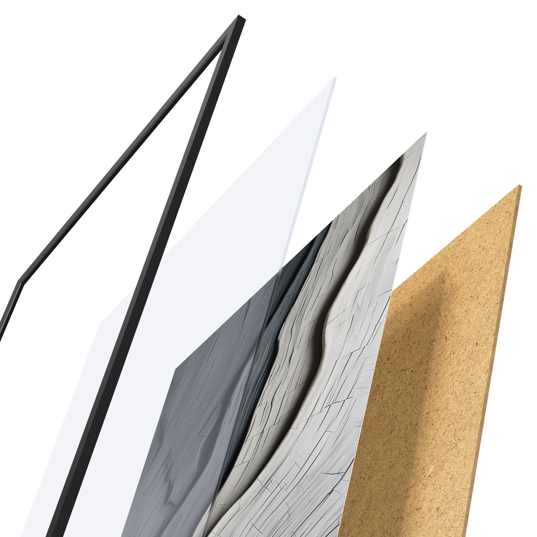 Plakát se skládá z rámu, plexiskla, tištěného obrazu a dřevotřískového podkladu. Díky úchytům na zadní straně lze plakát ihned zavěsit na zeď.