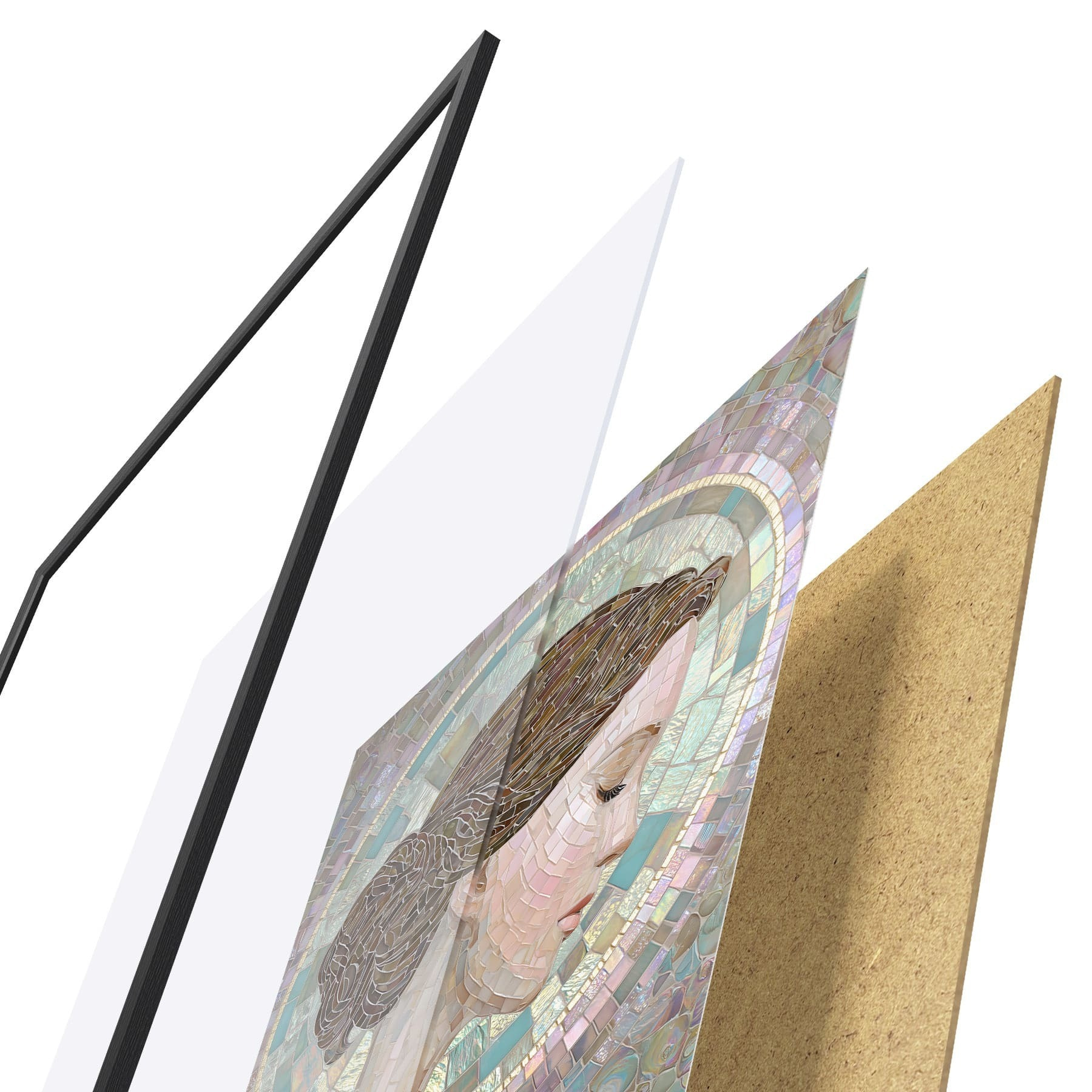 Plakát se skládá z rámu, plexiskla, tištěného obrazu a dřevotřískového podkladu. Díky úchytům na zadní straně lze plakát ihned zavěsit na zeď.