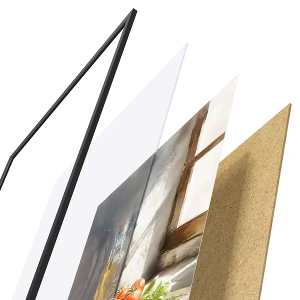 Plakát se skládá z rámu, plexiskla, tištěného obrazu a dřevotřískového podkladu. Díky úchytům na zadní straně lze plakát ihned zavěsit na zeď.
