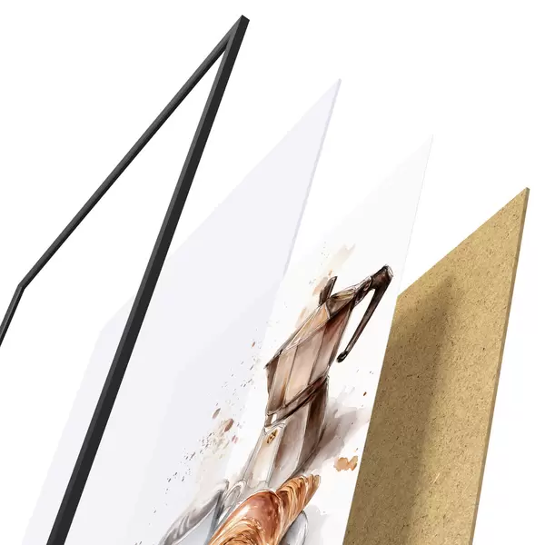 Plakát se skládá z rámu, plexiskla, tištěného obrazu a dřevotřískového podkladu. Díky úchytům na zadní straně lze plakát ihned zavěsit na zeď.