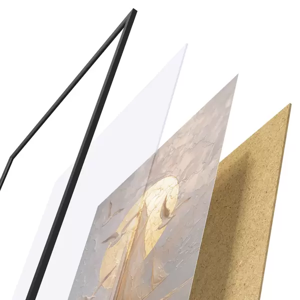 Plakát se skládá z rámu, plexiskla, tištěného obrazu a dřevotřískového podkladu. Díky úchytům na zadní straně lze plakát ihned zavěsit na zeď.