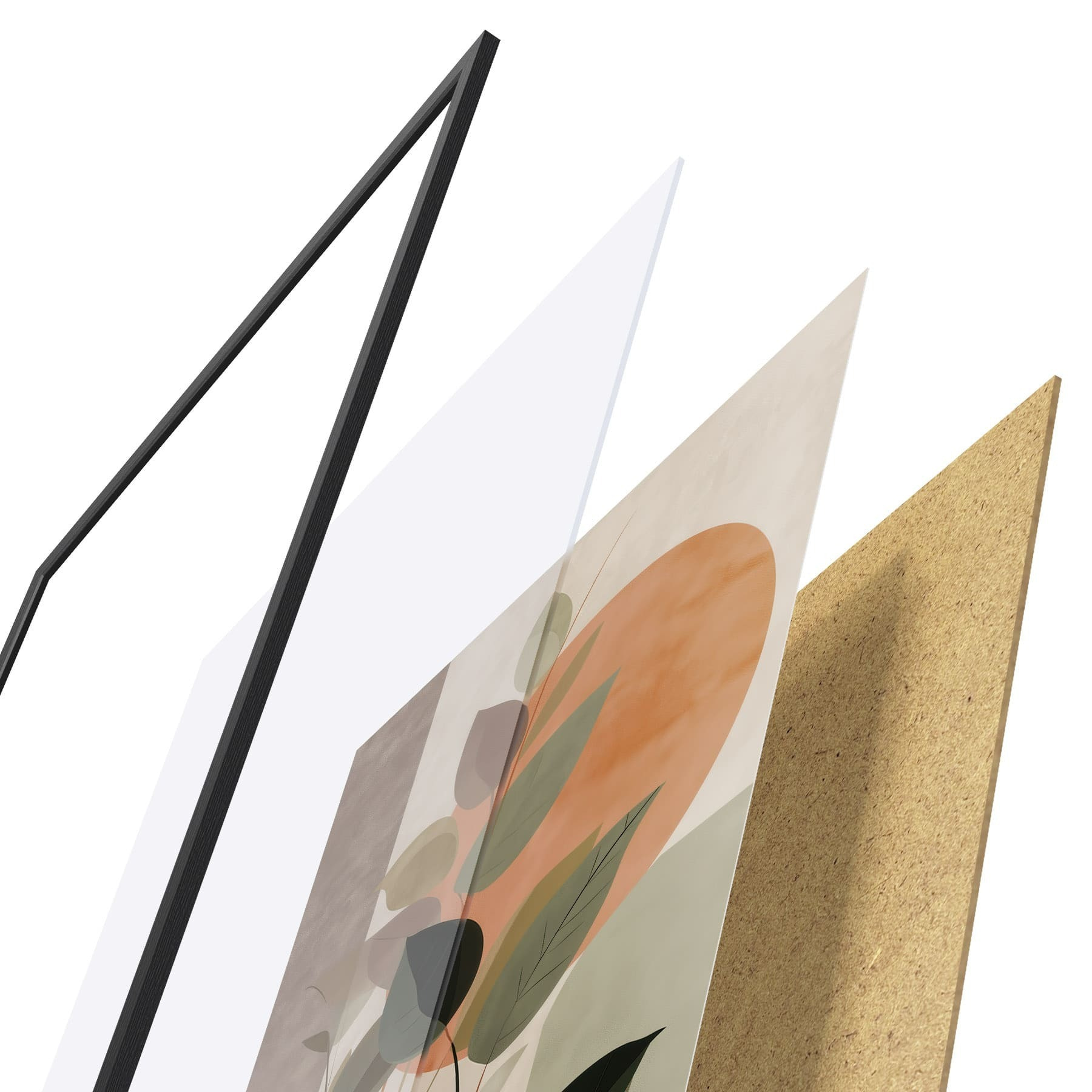 Plakát se skládá z rámu, plexiskla, tištěného obrazu a dřevotřískového podkladu. Díky úchytům na zadní straně lze plakát ihned zavěsit na zeď.