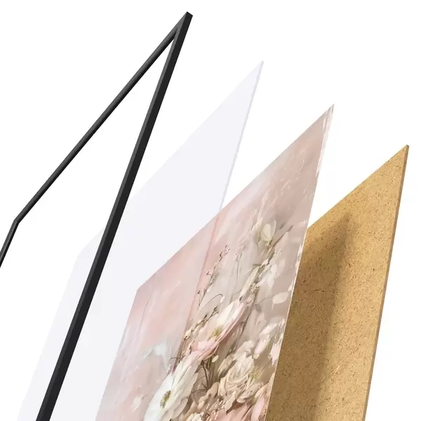 Plakát se skládá z rámu, plexiskla, tištěného obrazu a dřevotřískového podkladu. Díky úchytům na zadní straně lze plakát ihned zavěsit na zeď.