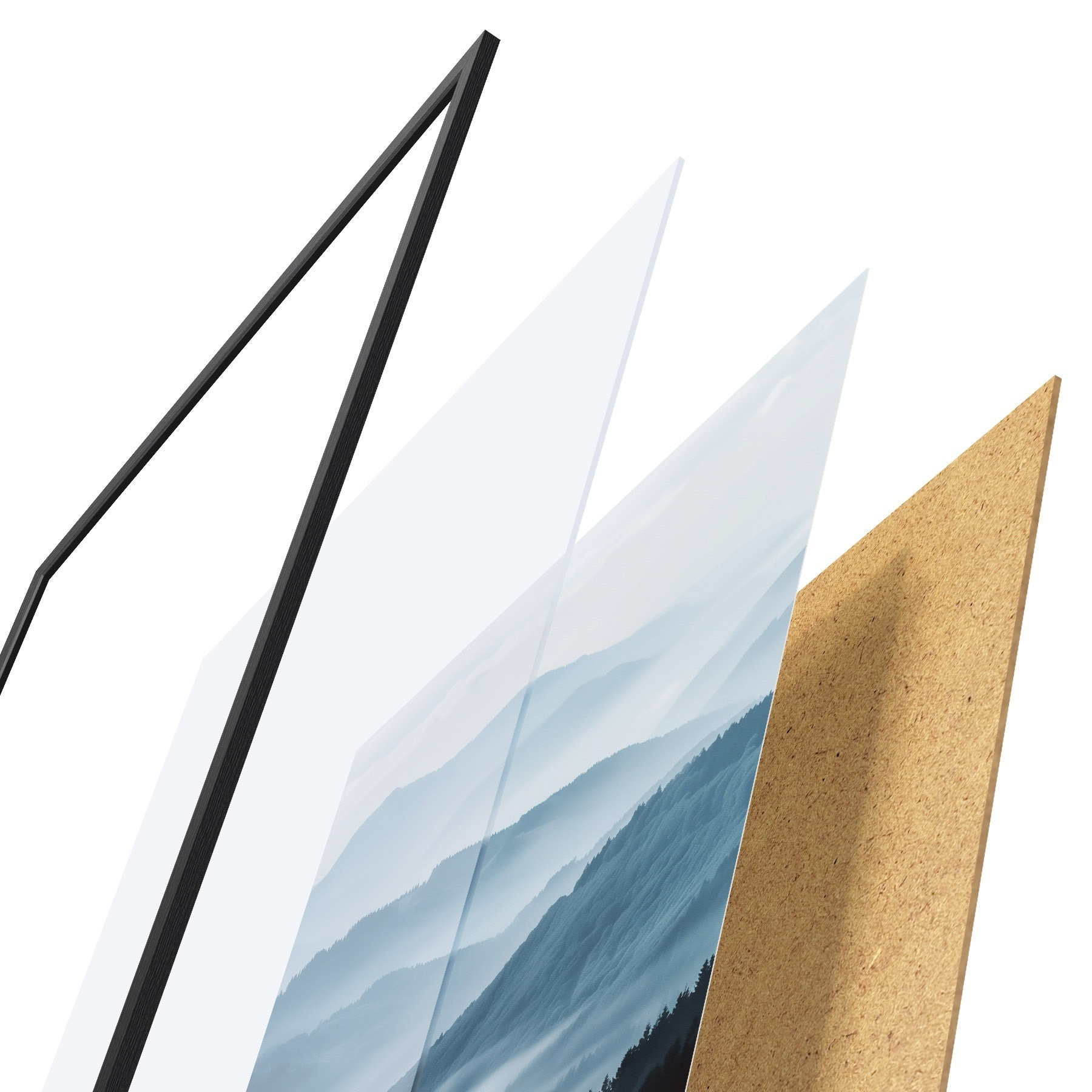 Plakát se skládá z rámu, plexiskla, tištěného obrazu a dřevotřískového podkladu. Díky úchytům na zadní straně lze plakát ihned zavěsit na zeď.