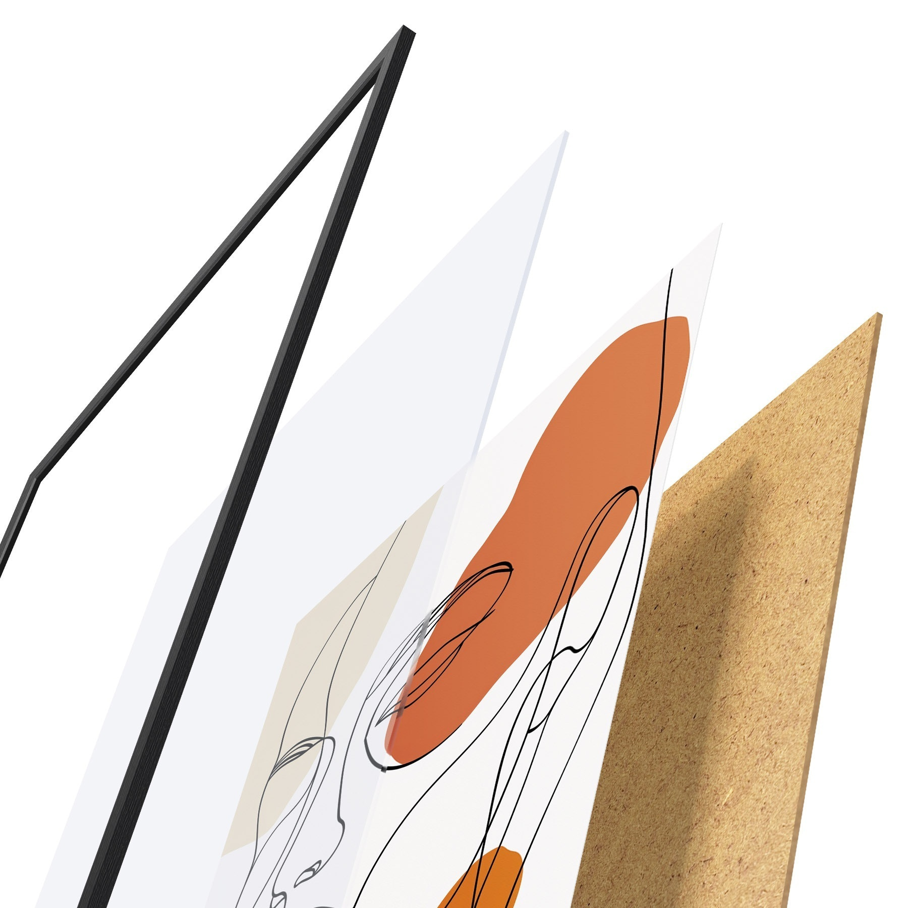 Plakát se skládá z rámu, plexiskla, tištěného obrazu a dřevotřískového podkladu. Díky úchytům na zadní straně lze plakát ihned zavěsit na zeď.