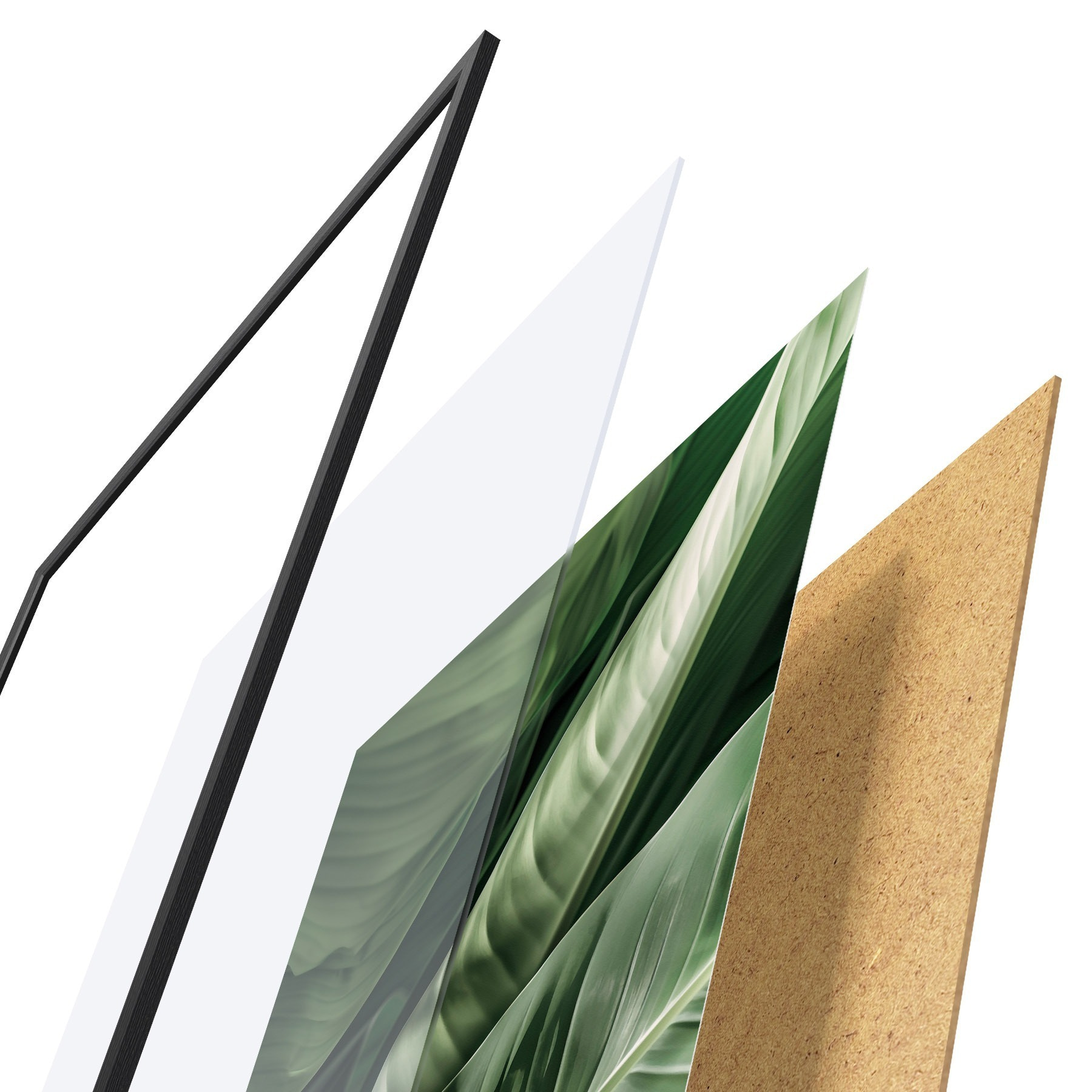 Plakát se skládá z rámu, plexiskla, tištěného obrazu a dřevotřískového podkladu. Díky úchytům na zadní straně lze plakát ihned zavěsit na zeď.