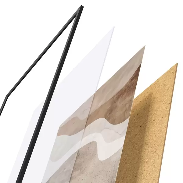 Plakát se skládá z rámu, plexiskla, tištěného obrazu a dřevotřískového podkladu. Díky úchytům na zadní straně lze plakát ihned zavěsit na zeď.