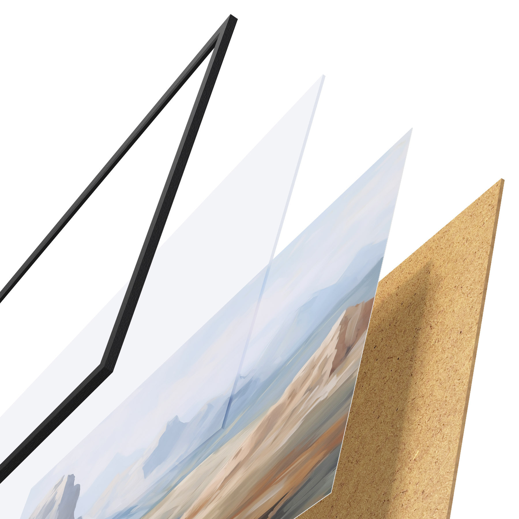 Plakát se skládá z rámu, plexiskla, tištěného obrazu a dřevotřískového podkladu. Díky úchytům na zadní straně lze plakát ihned zavěsit na zeď.