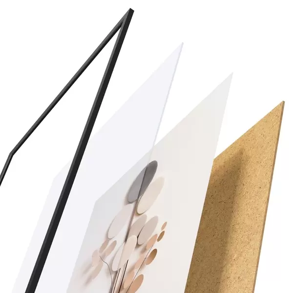 Plakát se skládá z rámu, plexiskla, tištěného obrazu a dřevotřískového podkladu. Díky úchytům na zadní straně lze plakát ihned zavěsit na zeď.