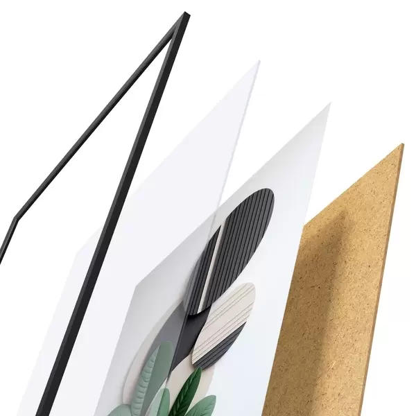 Plakát se skládá z rámu, plexiskla, tištěného obrazu a dřevotřískového podkladu. Díky úchytům na zadní straně lze plakát ihned zavěsit na zeď.