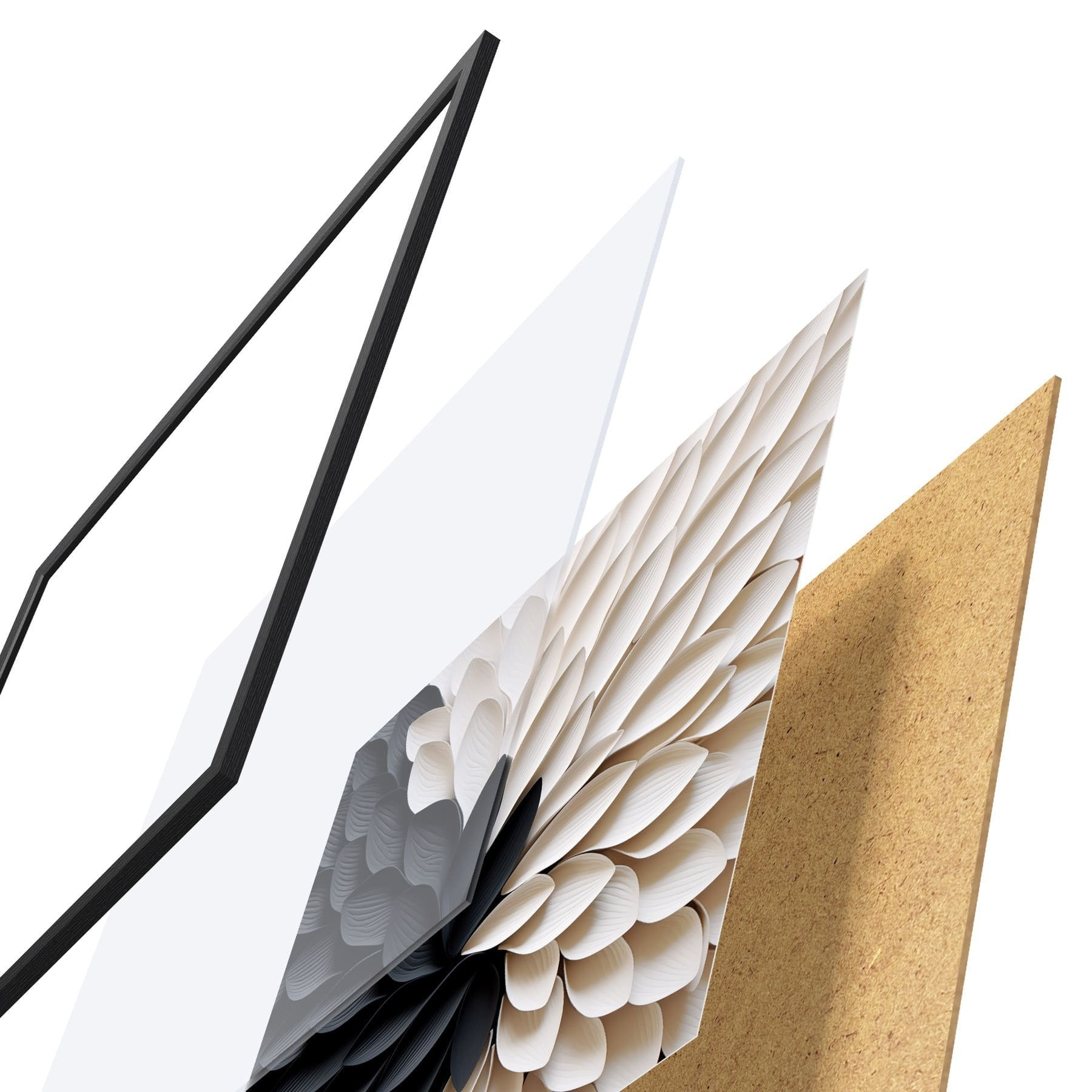 Plakát se skládá z rámu, plexiskla, tištěného obrazu a dřevotřískového podkladu. Díky úchytům na zadní straně lze plakát ihned zavěsit na zeď.