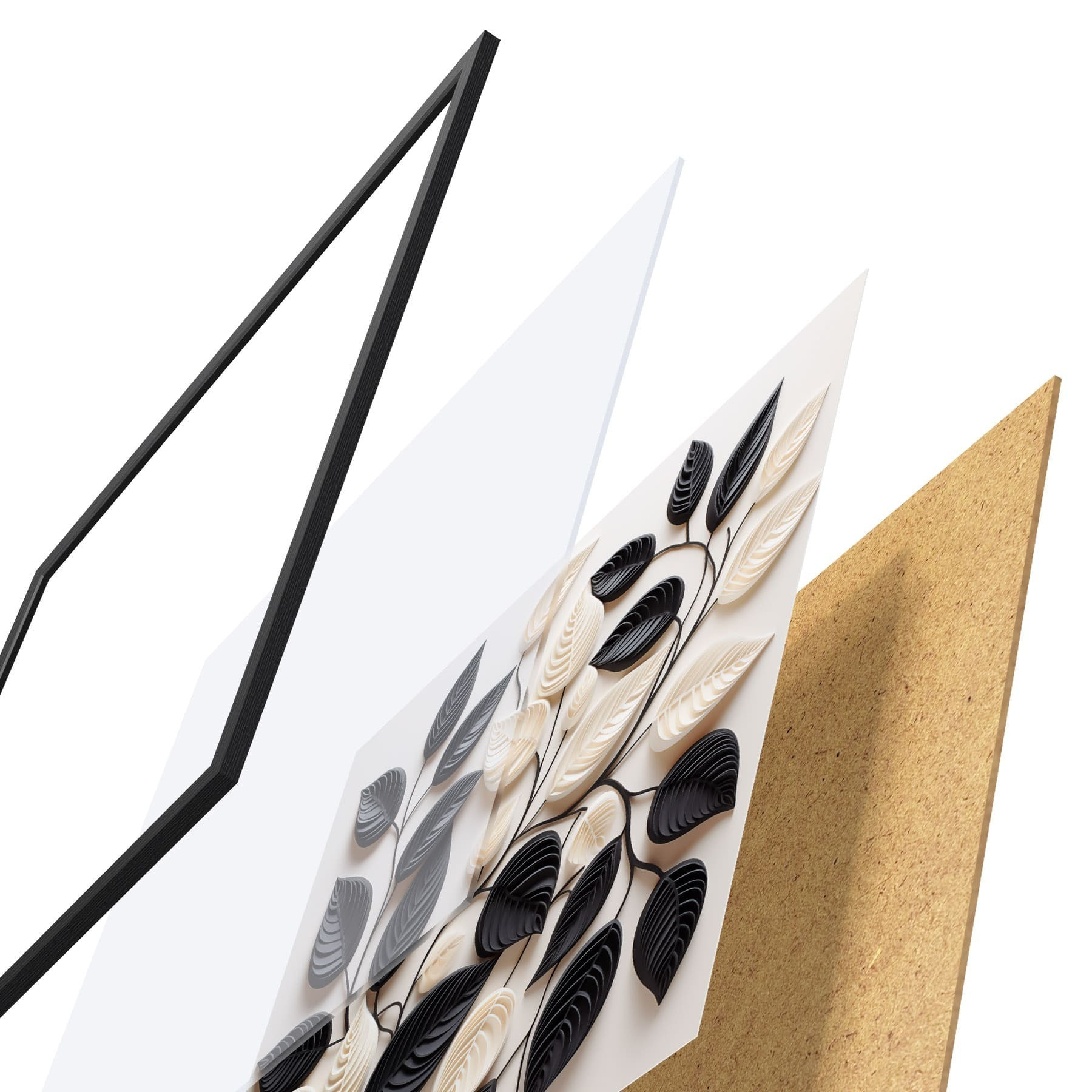 Plakát se skládá z rámu, plexiskla, tištěného obrazu a dřevotřískového podkladu. Díky úchytům na zadní straně lze plakát ihned zavěsit na zeď.