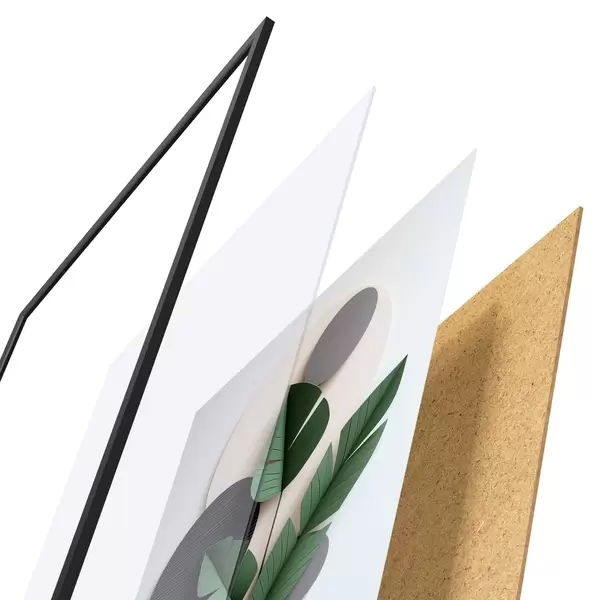 Plakát se skládá z rámu, plexiskla, tištěného obrazu a dřevotřískového podkladu. Díky úchytům na zadní straně lze plakát ihned zavěsit na zeď.