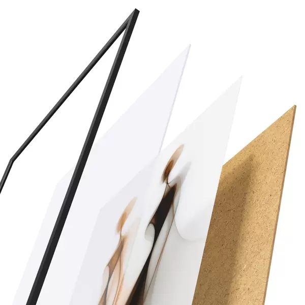 Plakát se skládá z rámu, plexiskla, tištěného obrazu a dřevotřískového podkladu. Díky úchytům na zadní straně lze plakát ihned zavěsit na zeď.