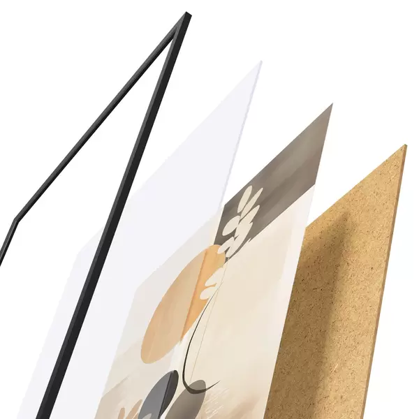 Plakát se skládá z rámu, plexiskla, tištěného obrazu a dřevotřískového podkladu. Díky úchytům na zadní straně lze plakát ihned zavěsit na zeď.