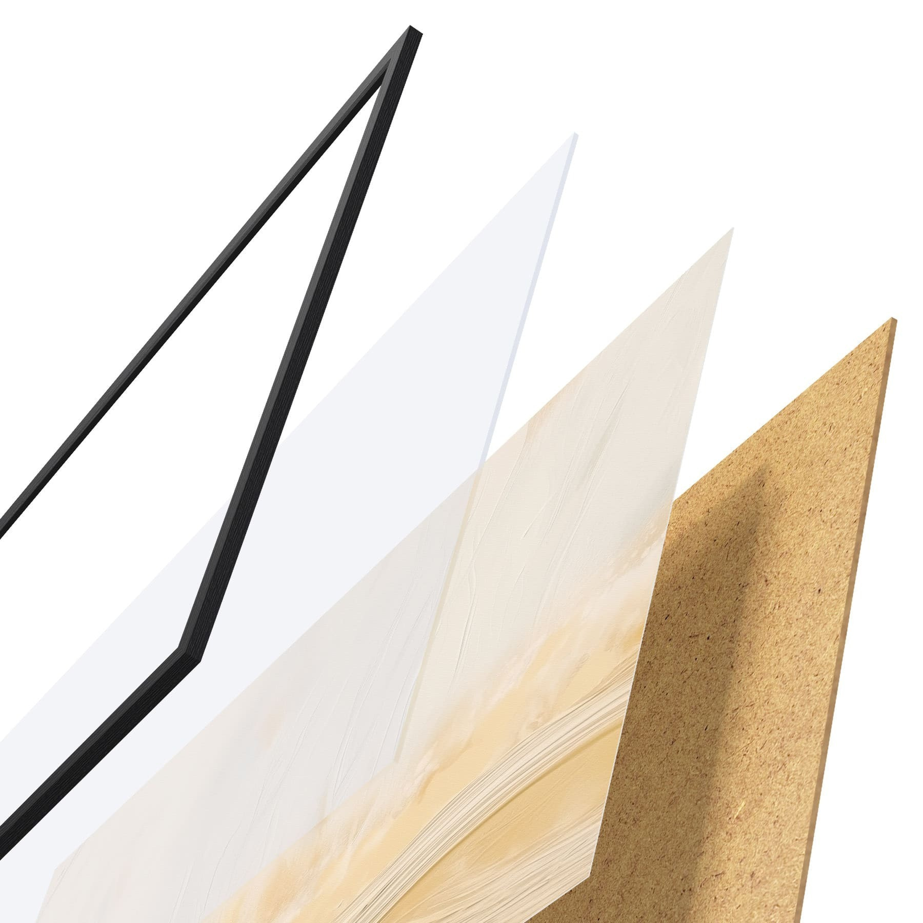 Plakát se skládá z rámu, plexiskla, tištěného obrazu a dřevotřískového podkladu. Díky úchytům na zadní straně lze plakát ihned zavěsit na zeď.