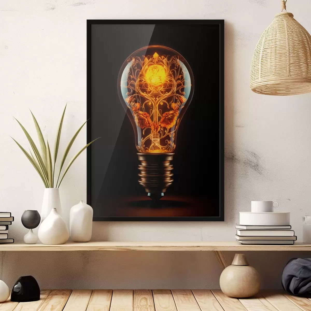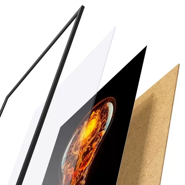 Plakát se skládá z rámu, plexiskla, tištěného obrazu a dřevotřískového podkladu. Díky úchytům na zadní straně lze plakát ihned zavěsit na zeď.