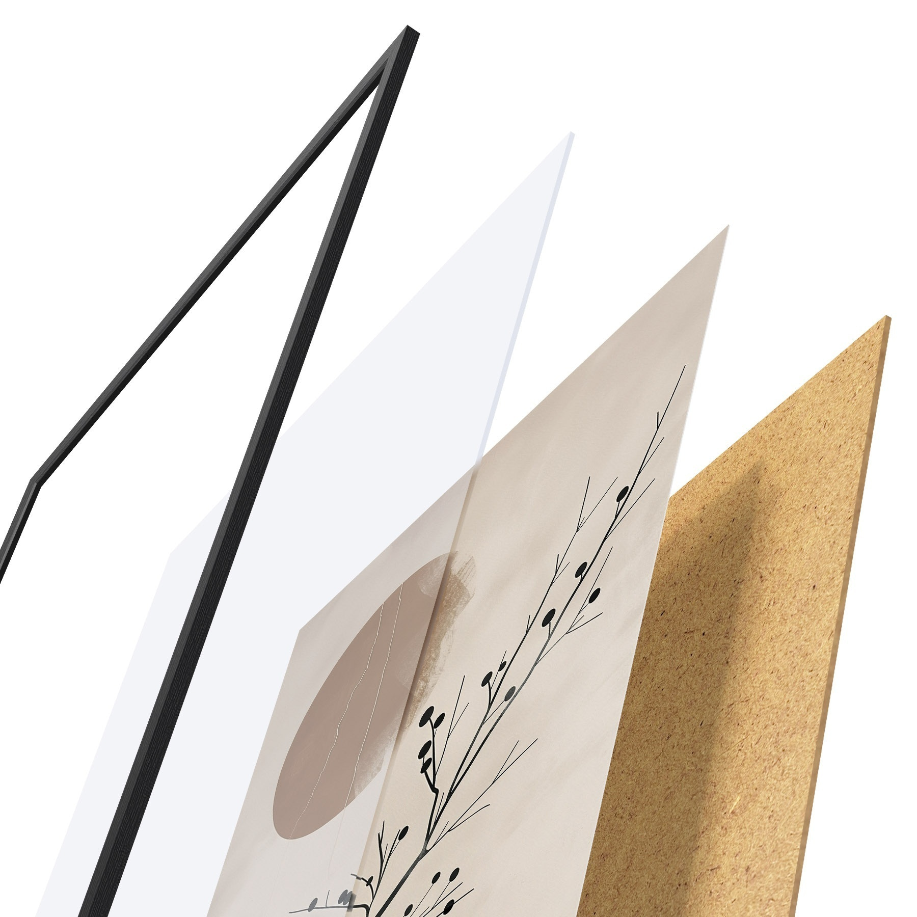 Plakát se skládá z rámu, plexiskla, tištěného obrazu a dřevotřískového podkladu. Díky úchytům na zadní straně lze plakát ihned zavěsit na zeď.