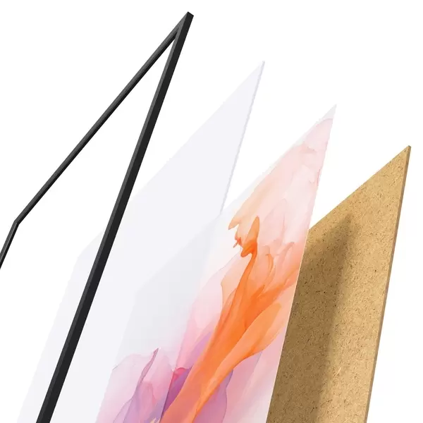 Plakát se skládá z rámu, plexiskla, tištěného obrazu a dřevotřískového podkladu. Díky úchytům na zadní straně lze plakát ihned zavěsit na zeď.