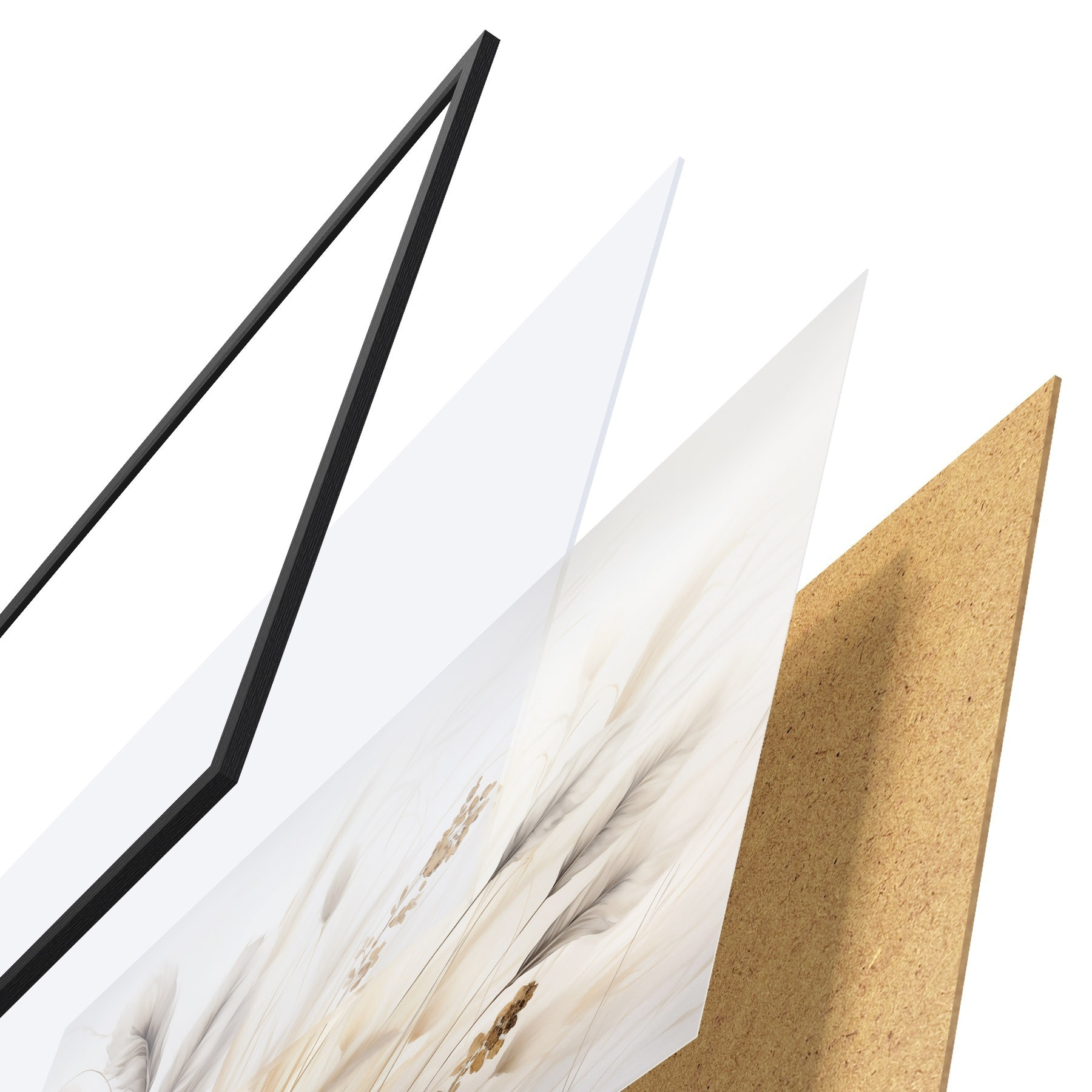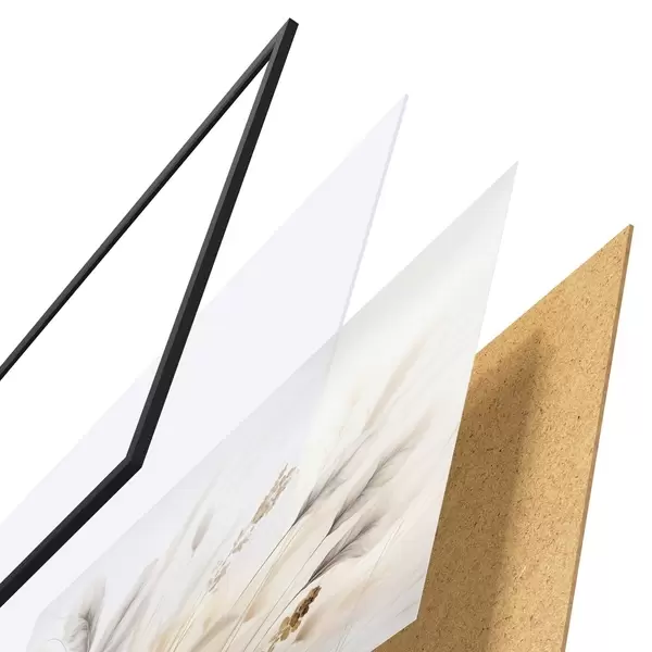 Plakát se skládá z rámu, plexiskla, tištěného obrazu a dřevotřískového podkladu. Díky úchytům na zadní straně lze plakát ihned zavěsit na zeď.