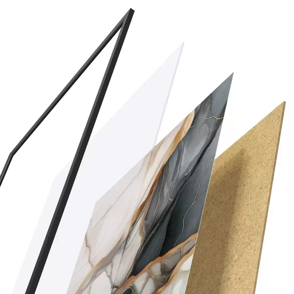 Plakát se skládá z rámu, plexiskla, tištěného obrazu a dřevotřískového podkladu. Díky úchytům na zadní straně lze plakát ihned zavěsit na zeď.