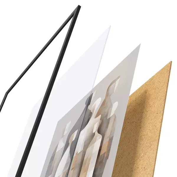 Plakát se skládá z rámu, plexiskla, tištěného obrazu a dřevotřískového podkladu. Díky úchytům na zadní straně lze plakát ihned zavěsit na zeď.