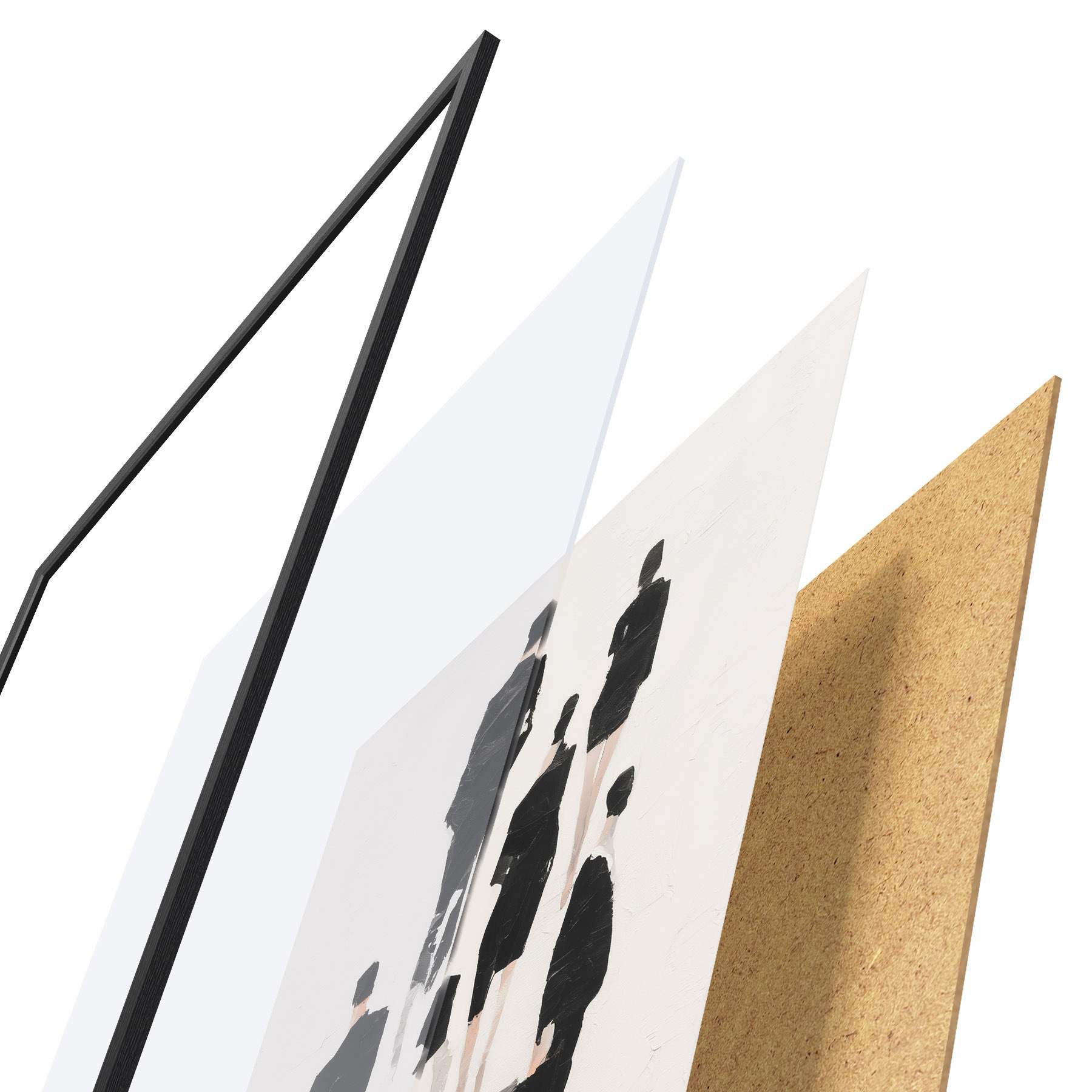 Plakát se skládá z rámu, plexiskla, tištěného obrazu a dřevotřískového podkladu. Díky úchytům na zadní straně lze plakát ihned zavěsit na zeď.