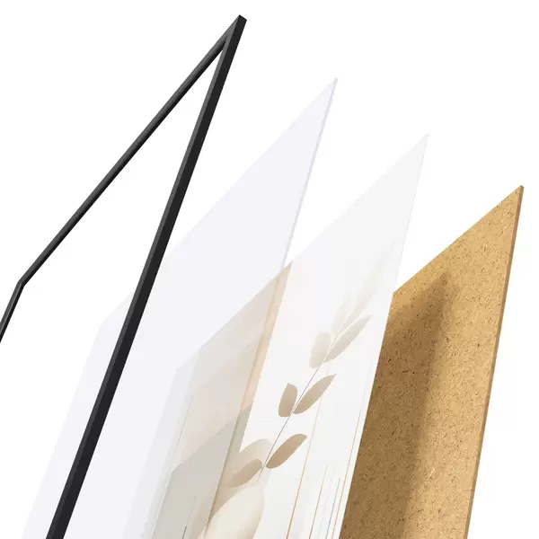 Plakát se skládá z rámu, plexiskla, tištěného obrazu a dřevotřískového podkladu. Díky úchytům na zadní straně lze plakát ihned zavěsit na zeď.