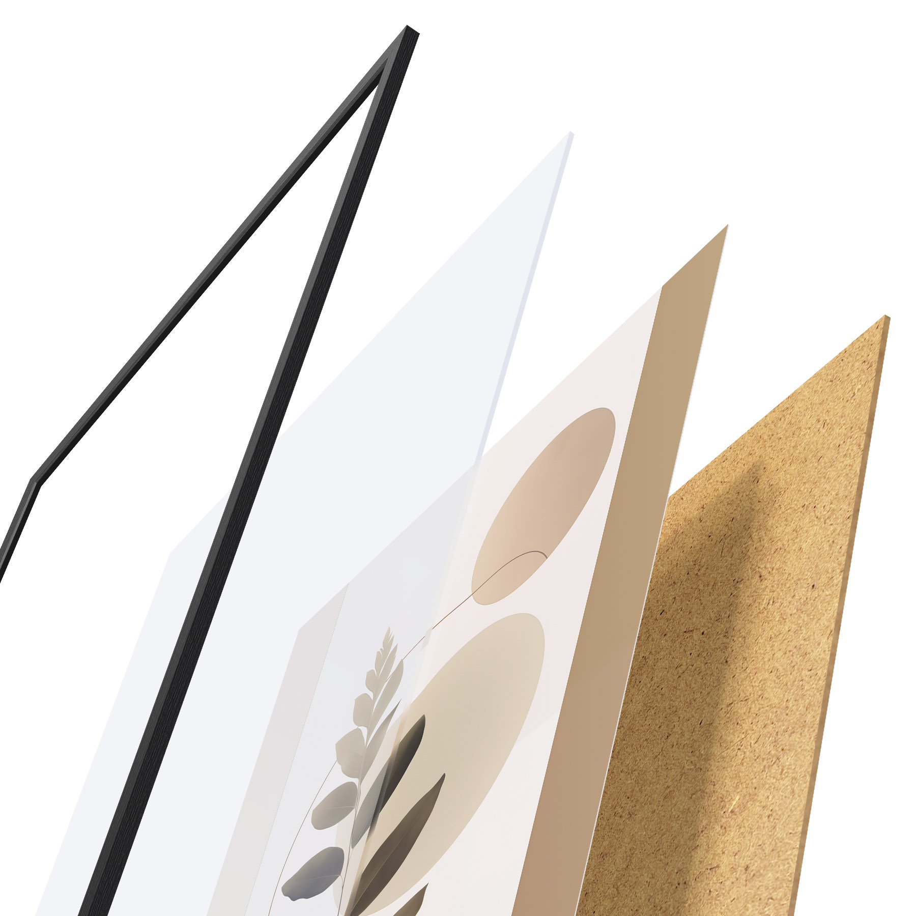Plakát se skládá z rámu, plexiskla, tištěného obrazu a dřevotřískového podkladu. Díky úchytům na zadní straně lze plakát ihned zavěsit na zeď.