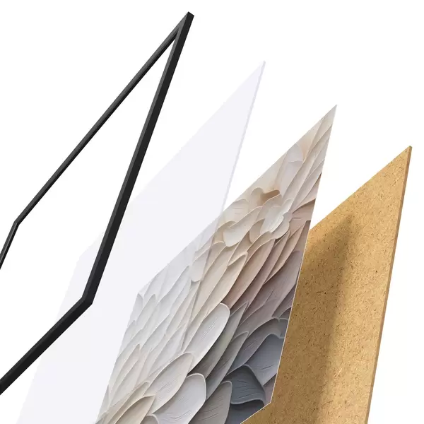Plakát se skládá z rámu, plexiskla, tištěného obrazu a dřevotřískového podkladu. Díky úchytům na zadní straně lze plakát ihned zavěsit na zeď.