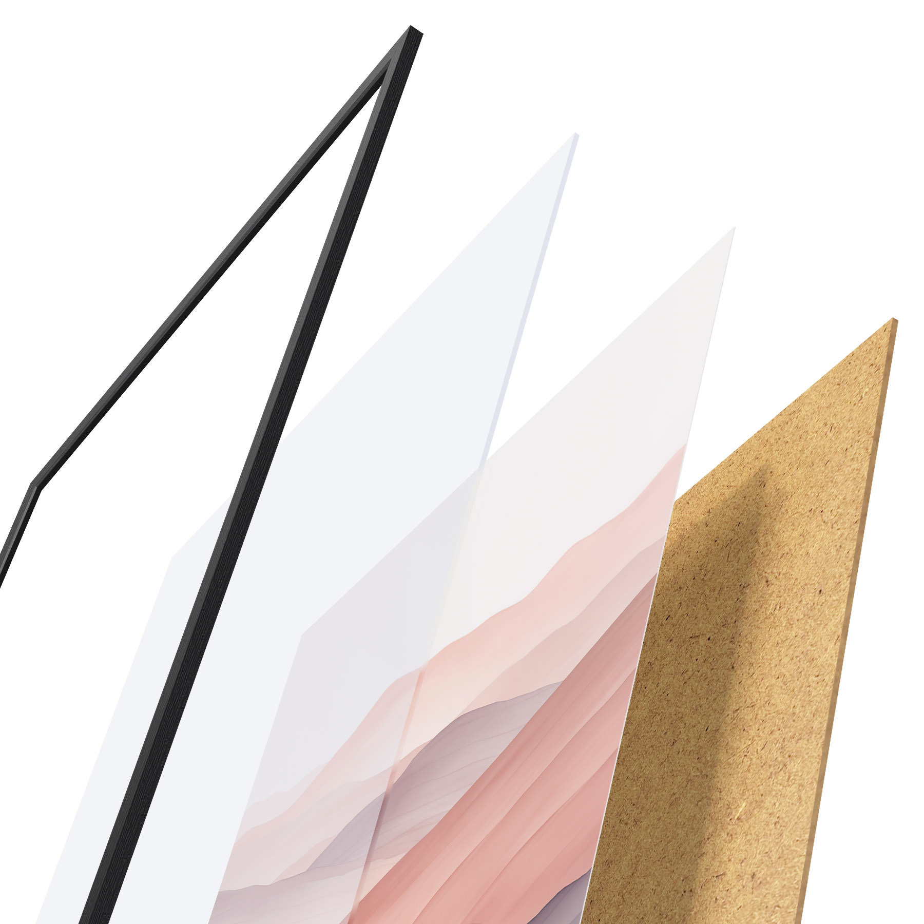 Plakát se skládá z rámu, plexiskla, tištěného obrazu a dřevotřískového podkladu. Díky úchytům na zadní straně lze plakát ihned zavěsit na zeď.
