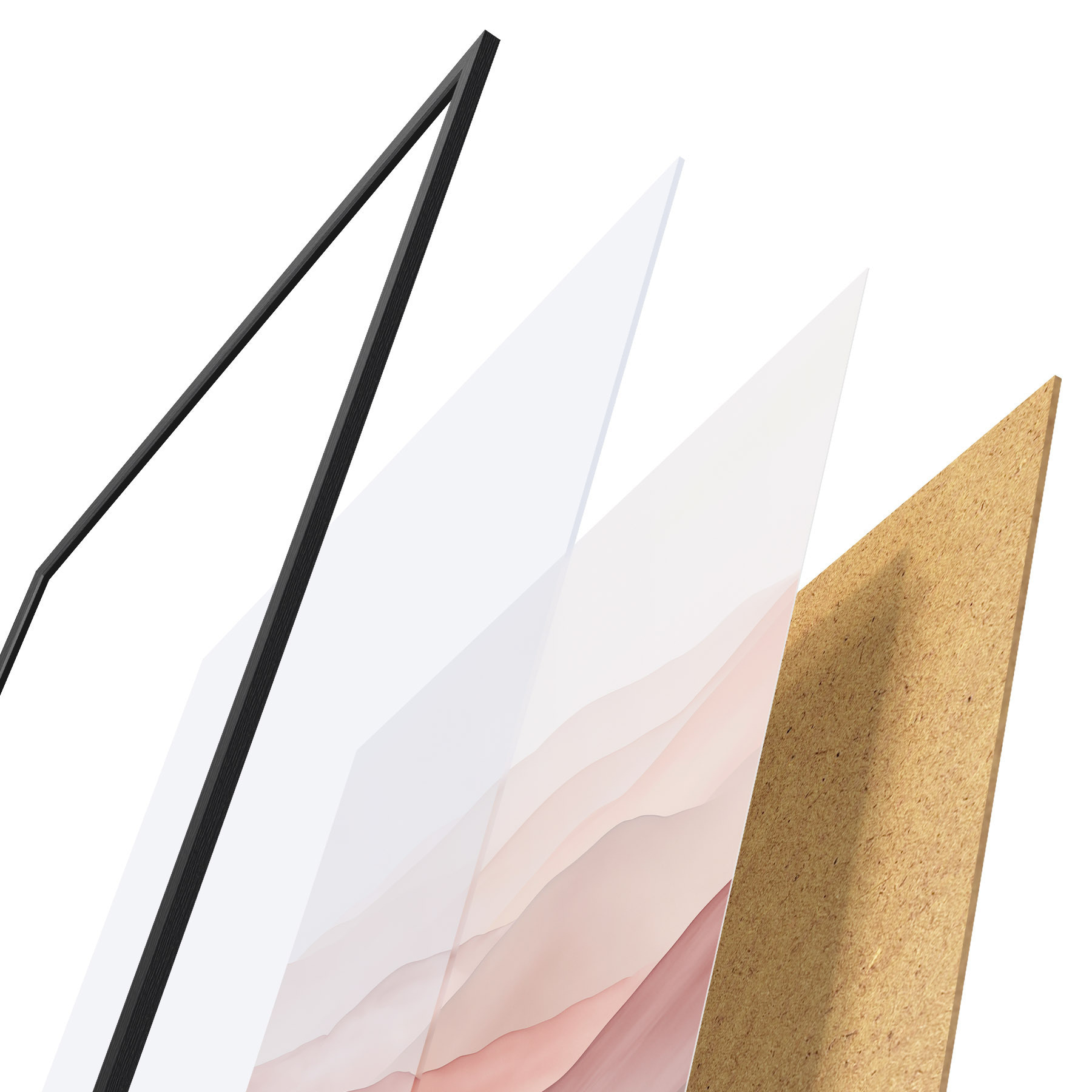 Plakát se skládá z rámu, plexiskla, tištěného obrazu a dřevotřískového podkladu. Díky úchytům na zadní straně lze plakát ihned zavěsit na zeď.