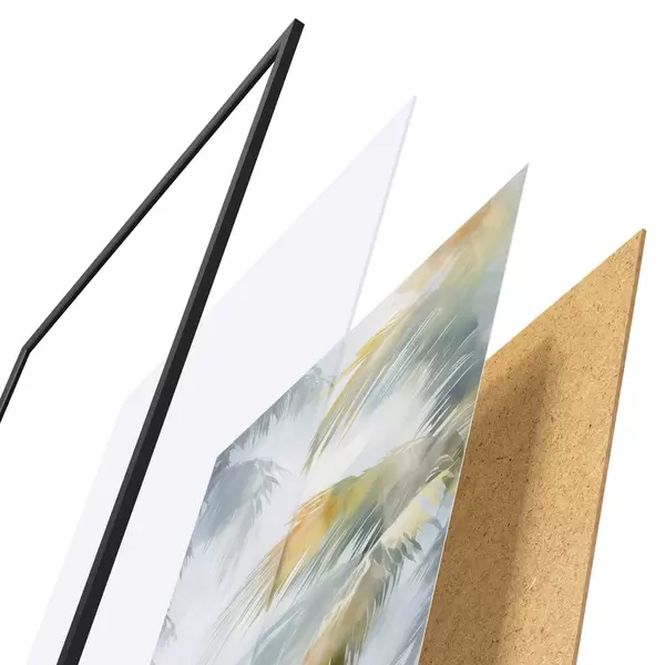 Plakát se skládá z rámu, plexiskla, tištěného obrazu a dřevotřískového podkladu. Díky úchytům na zadní straně lze plakát ihned zavěsit na zeď.
