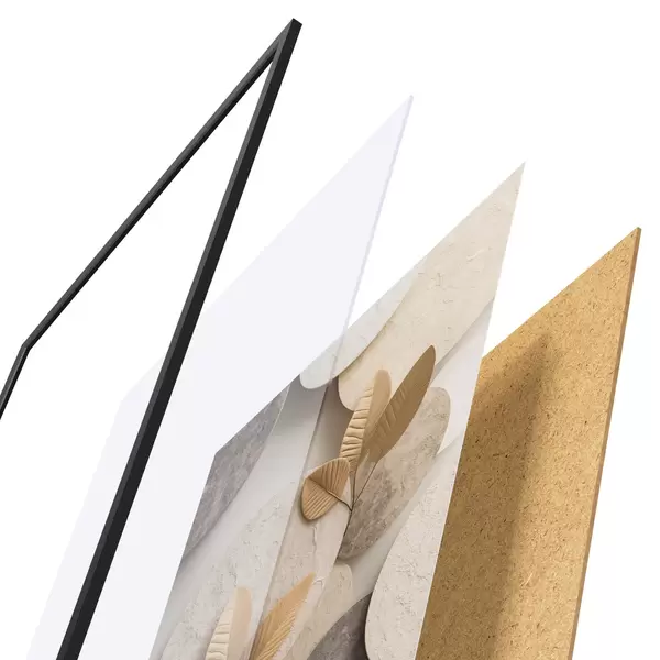Plakát se skládá z rámu, plexiskla, tištěného obrazu a dřevotřískového podkladu. Díky úchytům na zadní straně lze plakát ihned zavěsit na zeď.
