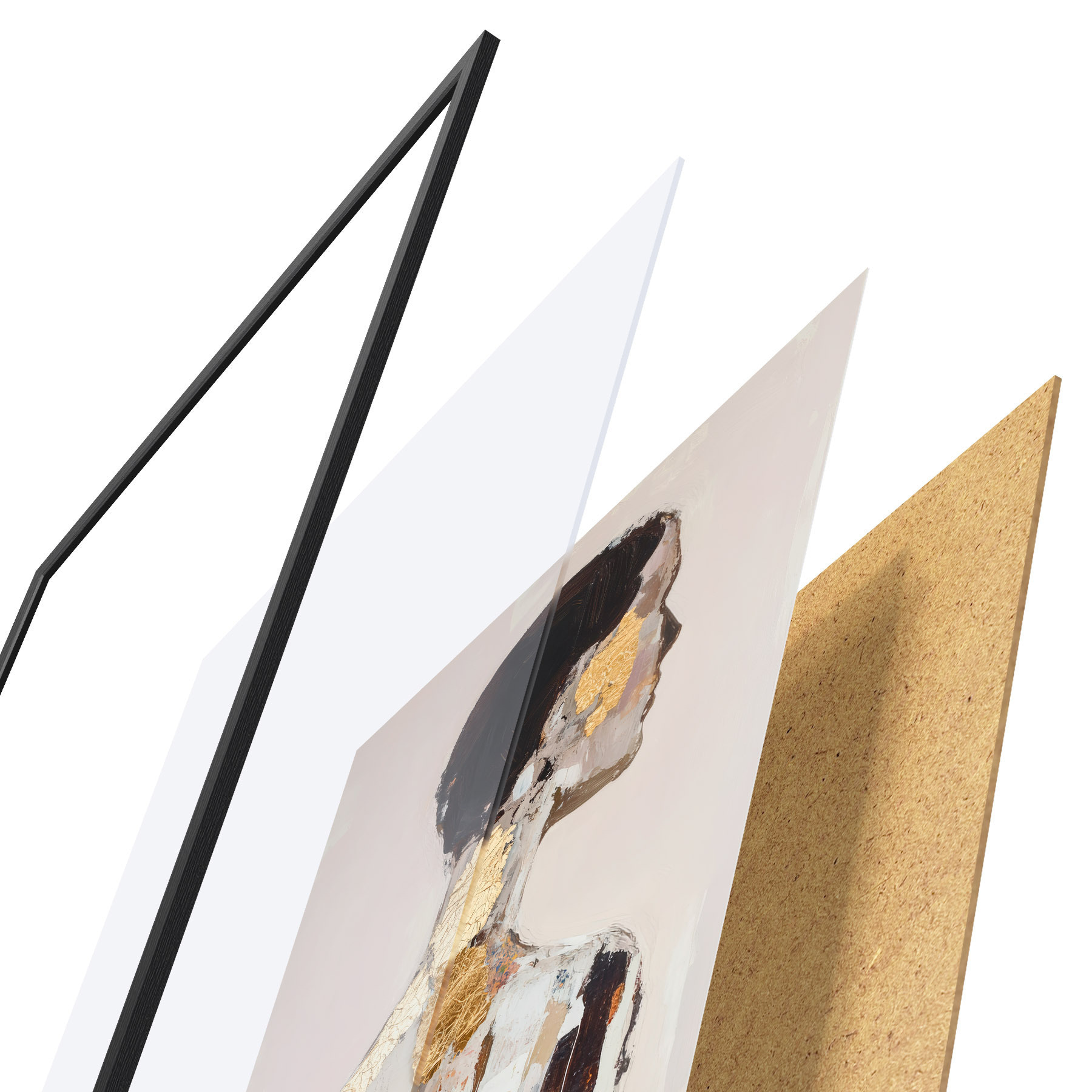 Plakát se skládá z rámu, plexiskla, tištěného obrazu a dřevotřískového podkladu. Díky úchytům na zadní straně lze plakát ihned zavěsit na zeď.