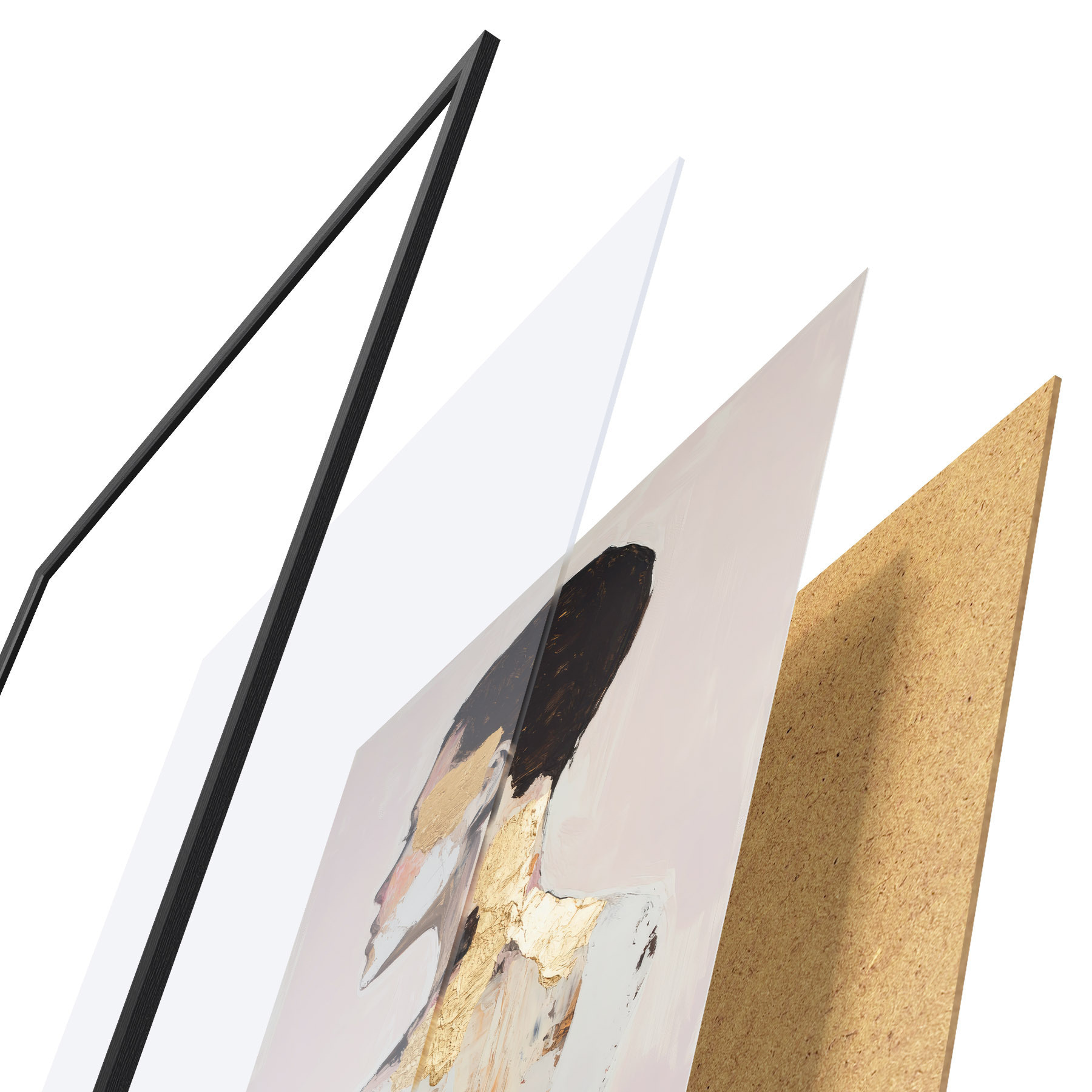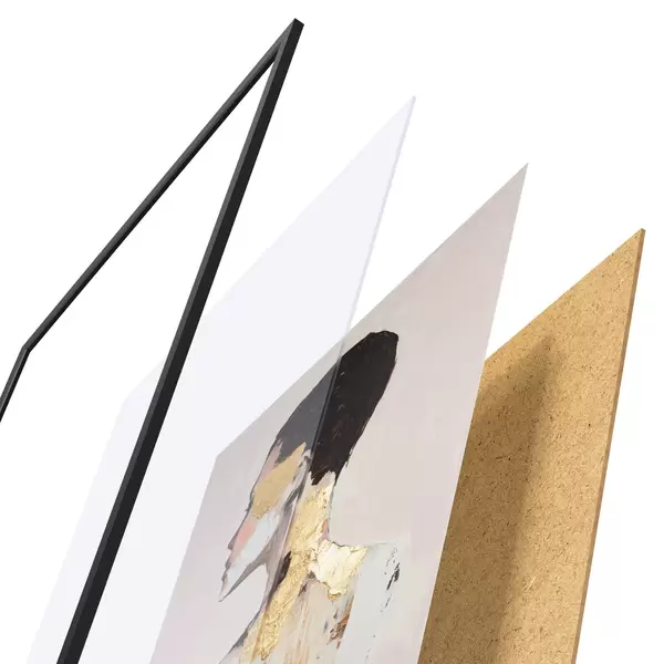 Plakát se skládá z rámu, plexiskla, tištěného obrazu a dřevotřískového podkladu. Díky úchytům na zadní straně lze plakát ihned zavěsit na zeď.