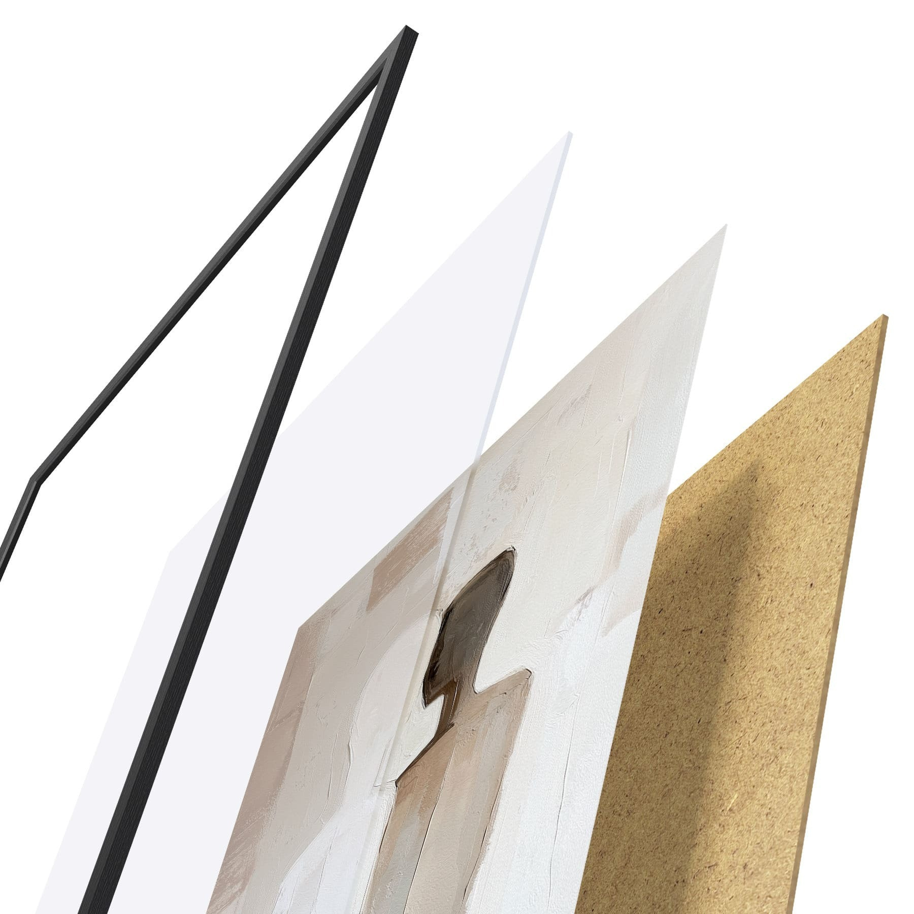 Plakát se skládá z rámu, plexiskla, tištěného obrazu a dřevotřískového podkladu. Díky úchytům na zadní straně lze plakát ihned zavěsit na zeď.