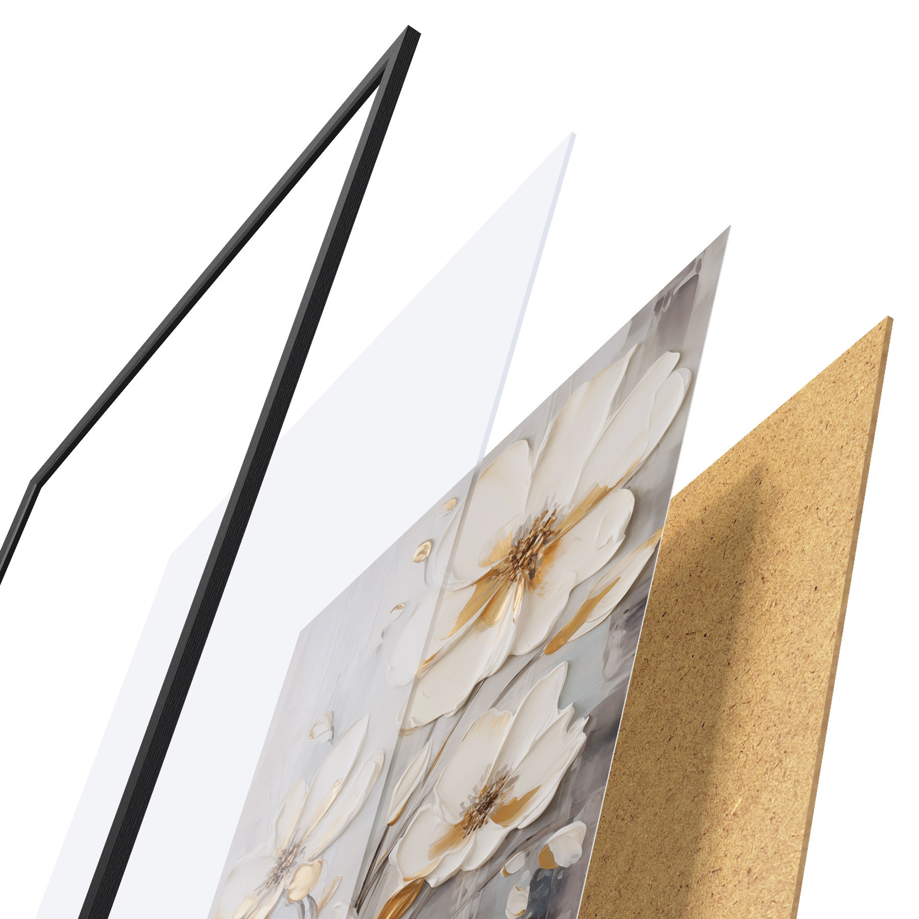 Plakát se skládá z rámu, plexiskla, tištěného obrazu a dřevotřískového podkladu. Díky úchytům na zadní straně lze plakát ihned zavěsit na zeď.