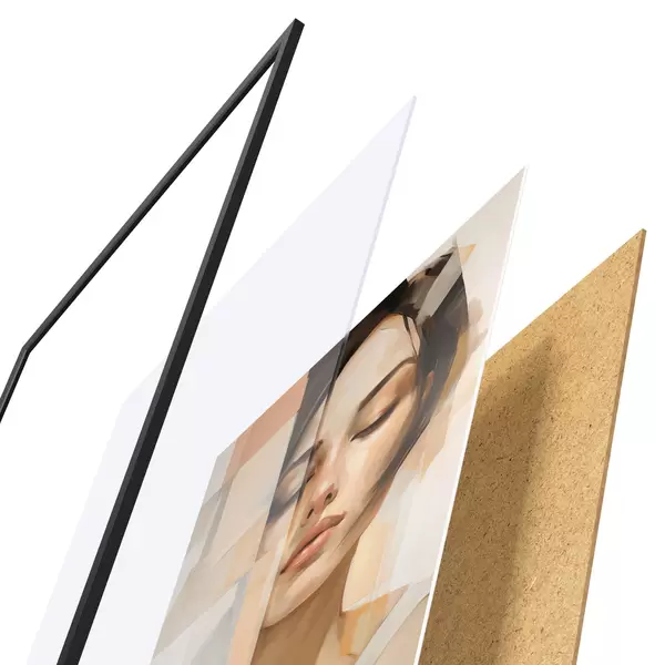 Plakát se skládá z rámu, plexiskla, tištěného obrazu a dřevotřískového podkladu. Díky úchytům na zadní straně lze plakát ihned zavěsit na zeď.