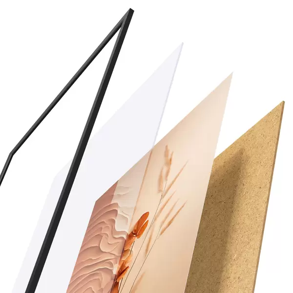 Plakát se skládá z rámu, plexiskla, tištěného obrazu a dřevotřískového podkladu. Díky úchytům na zadní straně lze plakát ihned zavěsit na zeď.