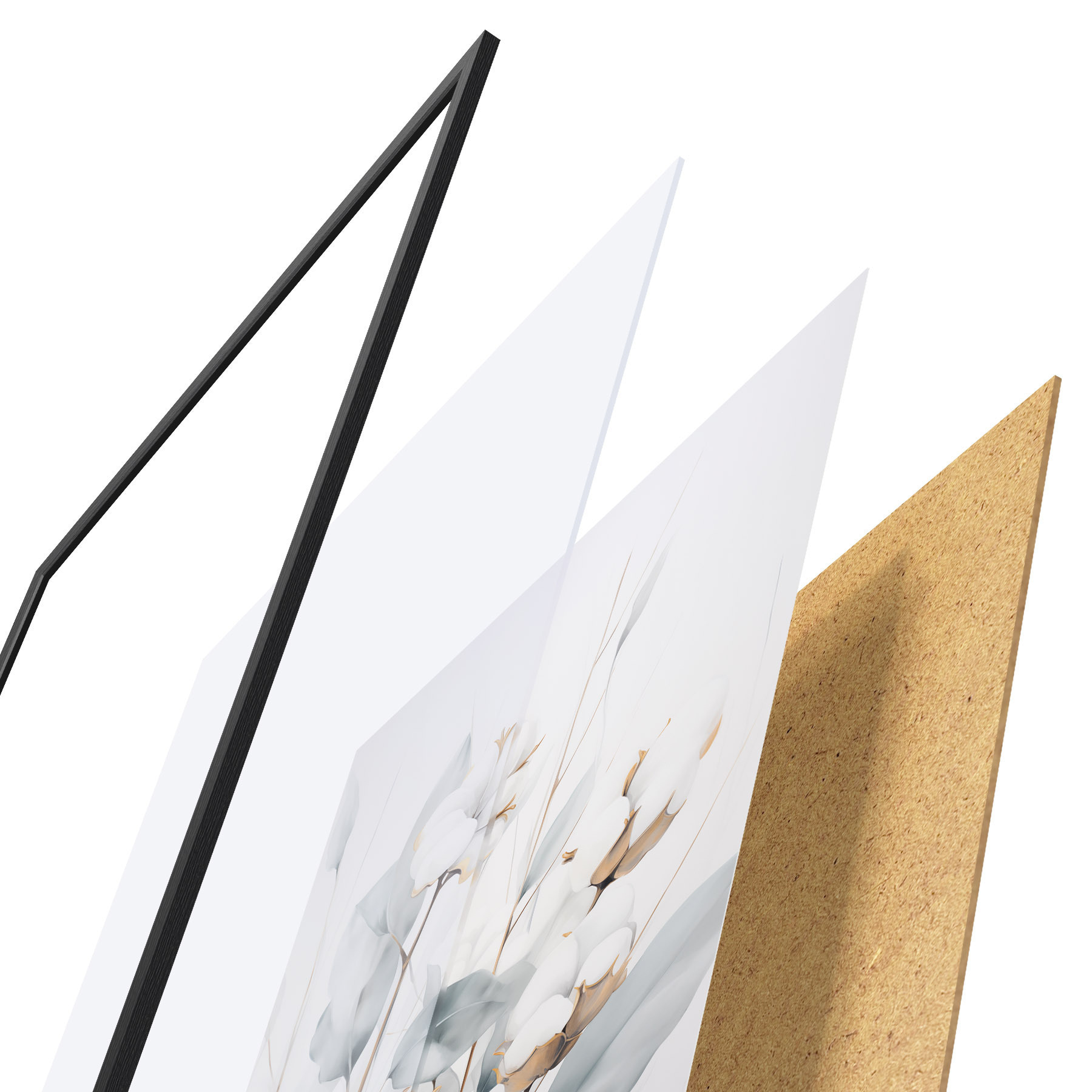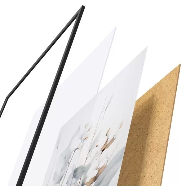 Plakát se skládá z rámu, plexiskla, tištěného obrazu a dřevotřískového podkladu. Díky úchytům na zadní straně lze plakát ihned zavěsit na zeď.