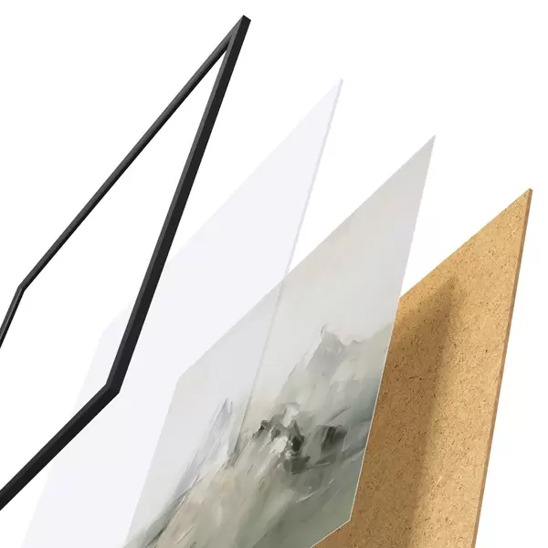 Plakát se skládá z rámu, plexiskla, tištěného obrazu a dřevotřískového podkladu. Díky úchytům na zadní straně lze plakát ihned zavěsit na zeď.