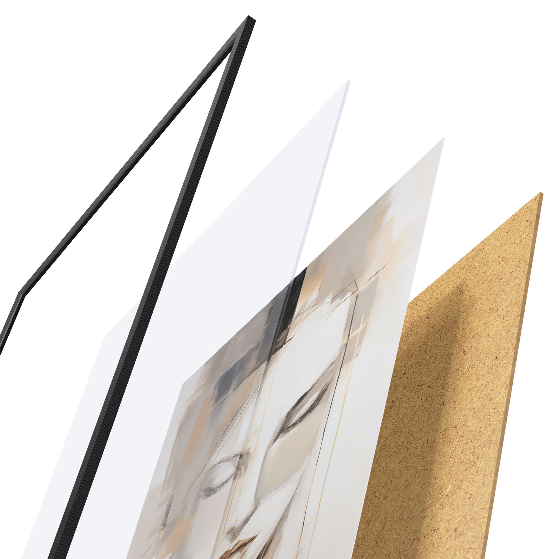 Plakát se skládá z rámu, plexiskla, tištěného obrazu a dřevotřískového podkladu. Díky úchytům na zadní straně lze plakát ihned zavěsit na zeď.