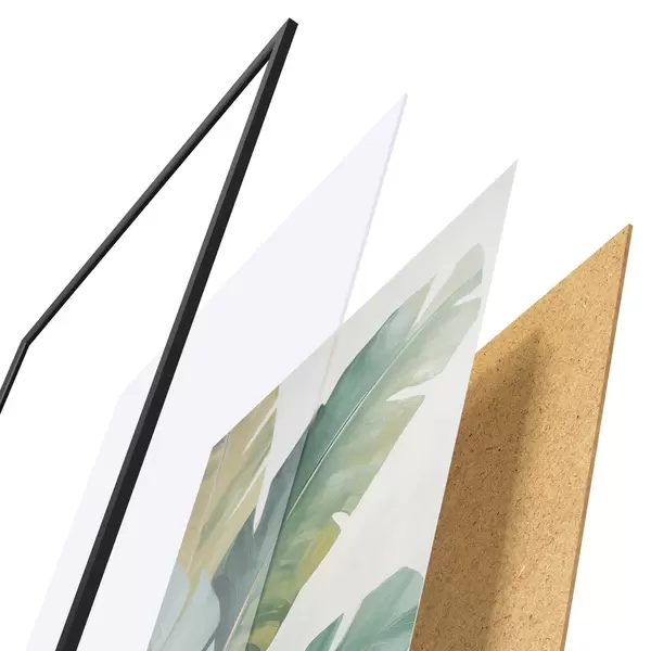 Plakát se skládá z rámu, plexiskla, tištěného obrazu a dřevotřískového podkladu. Díky úchytům na zadní straně lze plakát ihned zavěsit na zeď.
