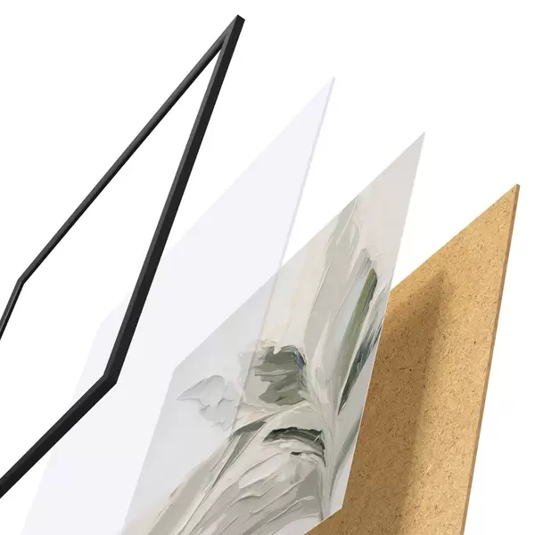Plakát se skládá z rámu, plexiskla, tištěného obrazu a dřevotřískového podkladu. Díky úchytům na zadní straně lze plakát ihned zavěsit na zeď.