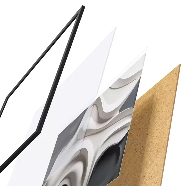 Plakát se skládá z rámu, plexiskla, tištěného obrazu a dřevotřískového podkladu. Díky úchytům na zadní straně lze plakát ihned zavěsit na zeď.
