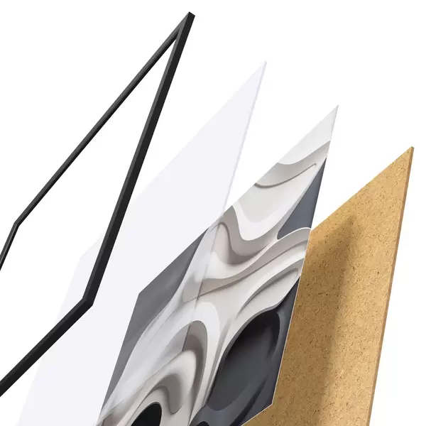 Plakát se skládá z rámu, plexiskla, tištěného obrazu a dřevotřískového podkladu. Díky úchytům na zadní straně lze plakát ihned zavěsit na zeď.